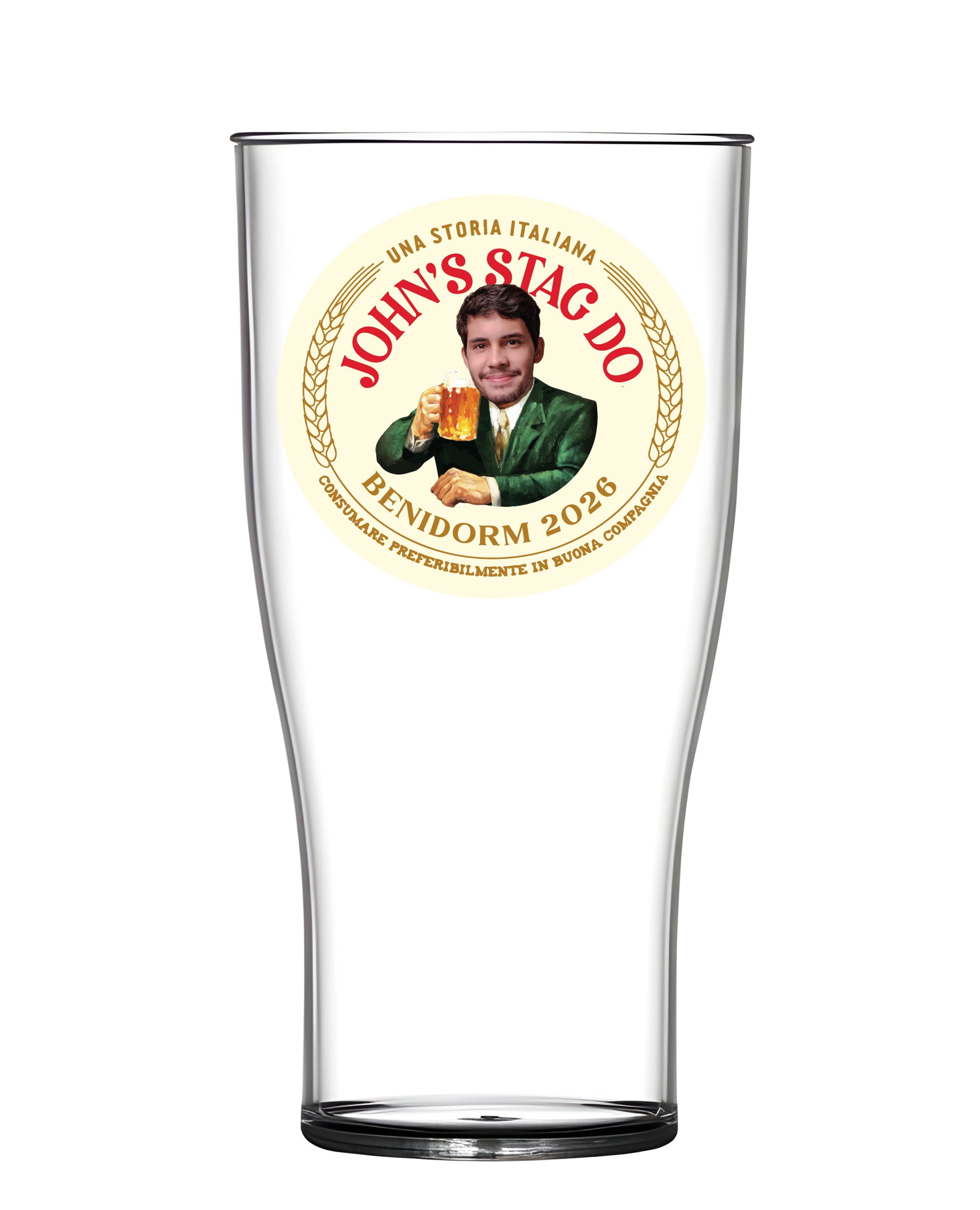 Classy, continental vibes with a laurel-and-badge motif—perfect for the suave stag who still ends up in a kebab shop. 18+ only.