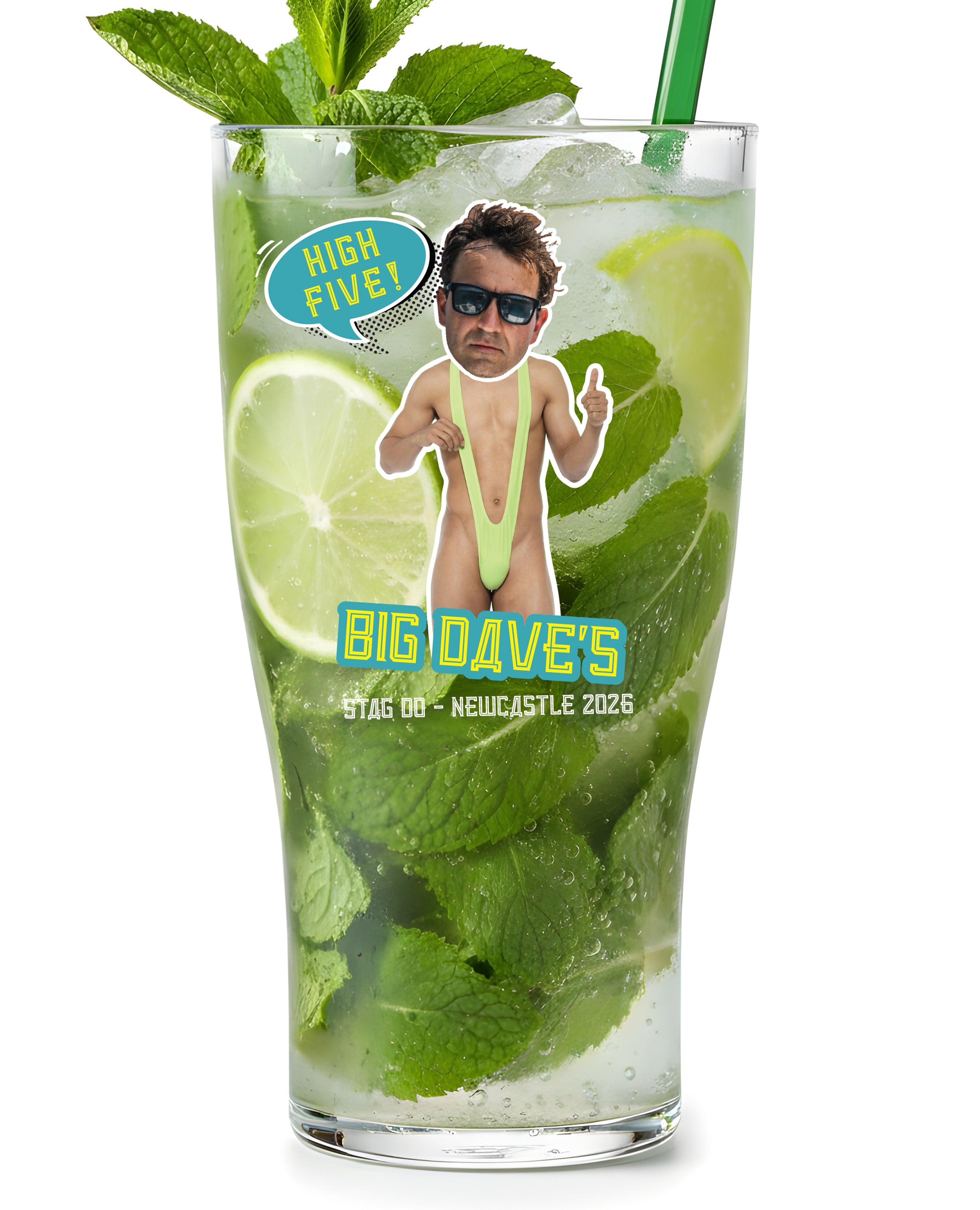 Jagshemash! The Lad’s holiday energy in cup form. Bold moustache, lime-green “mankini and your stag’s name front-and-centre - and definitely add the stag’s face for maximum chaos/embarrassment. 18+ only.