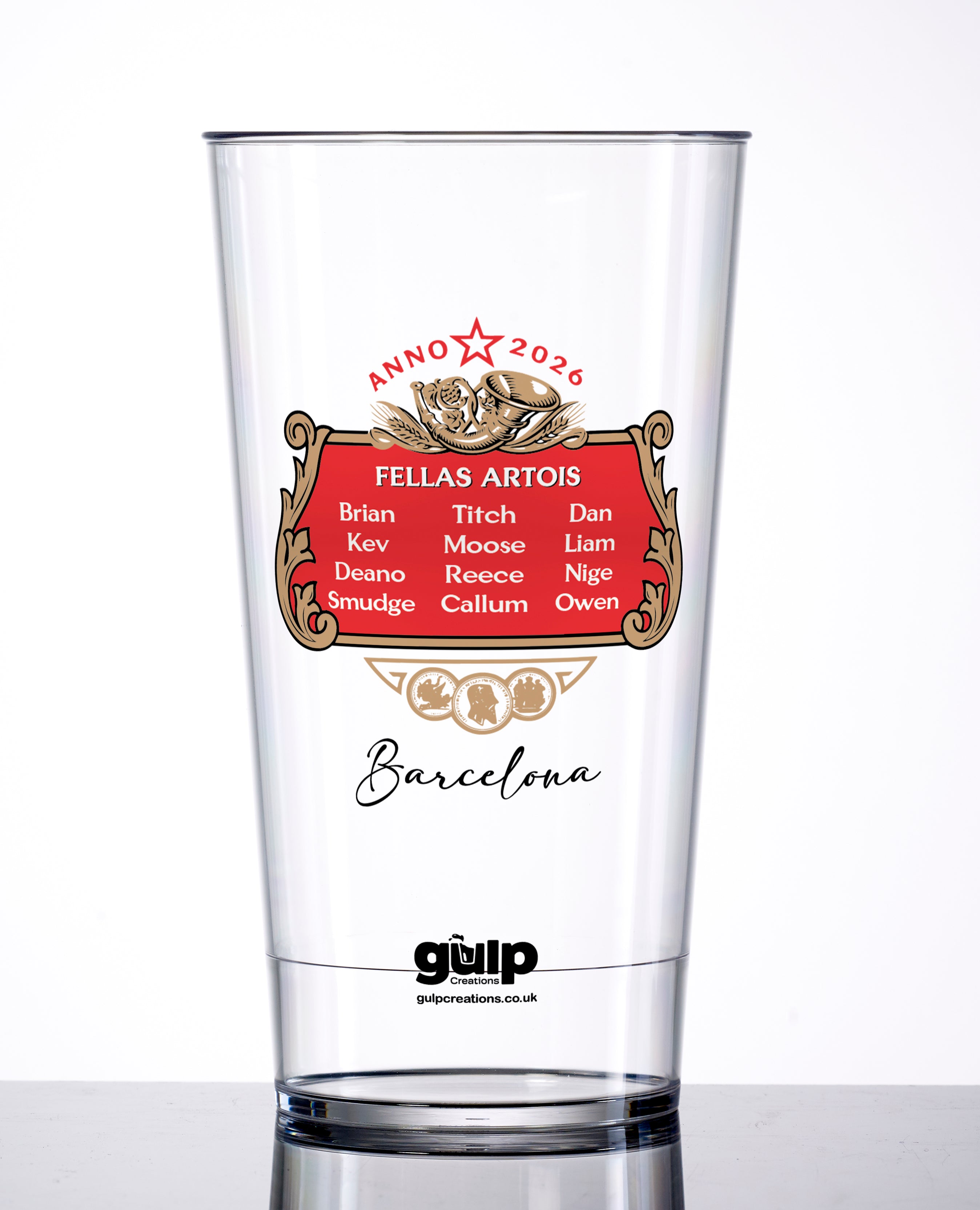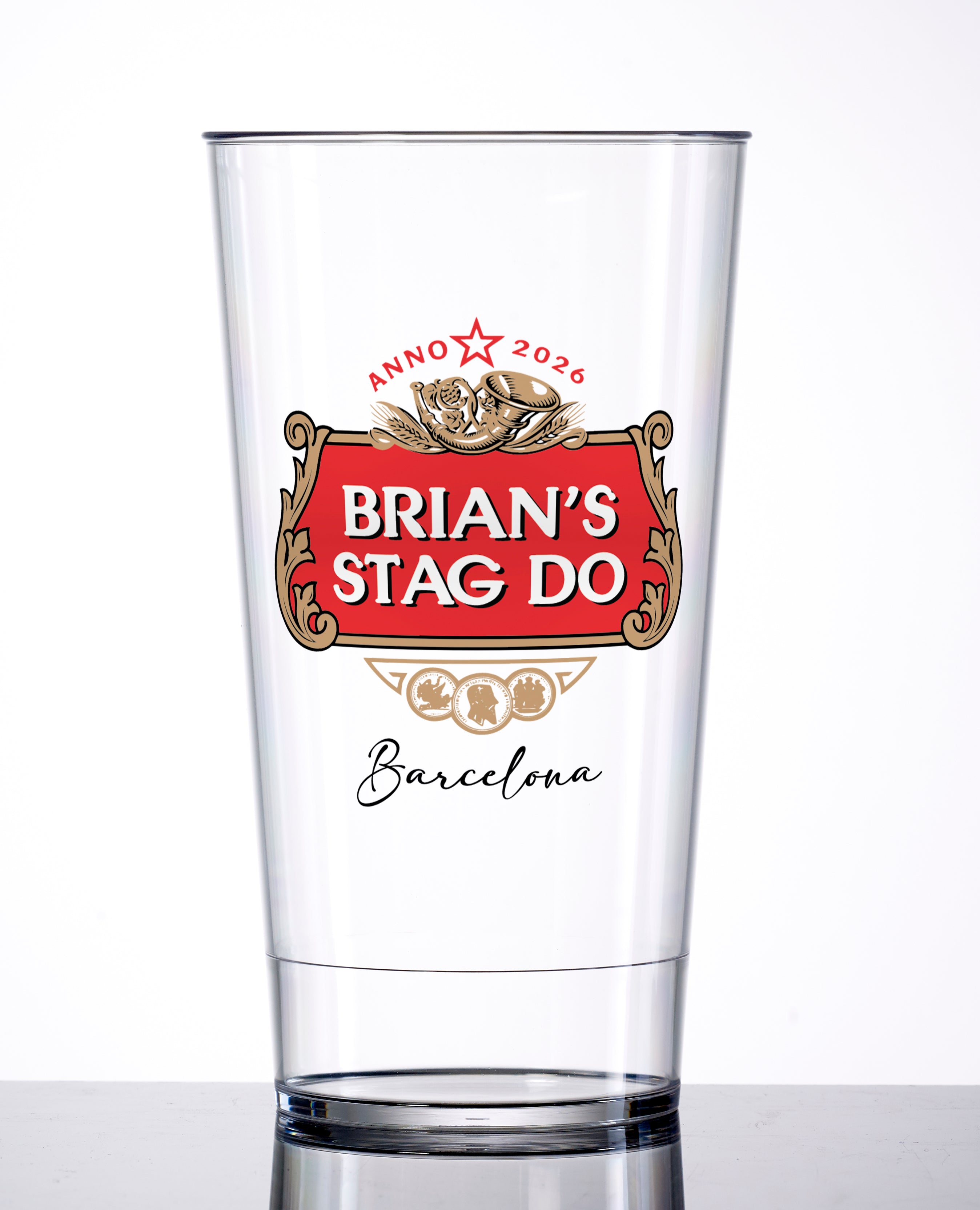 20oz reusable plastic pint cup - safe for nights out and will travel perfectly in your suitcase!