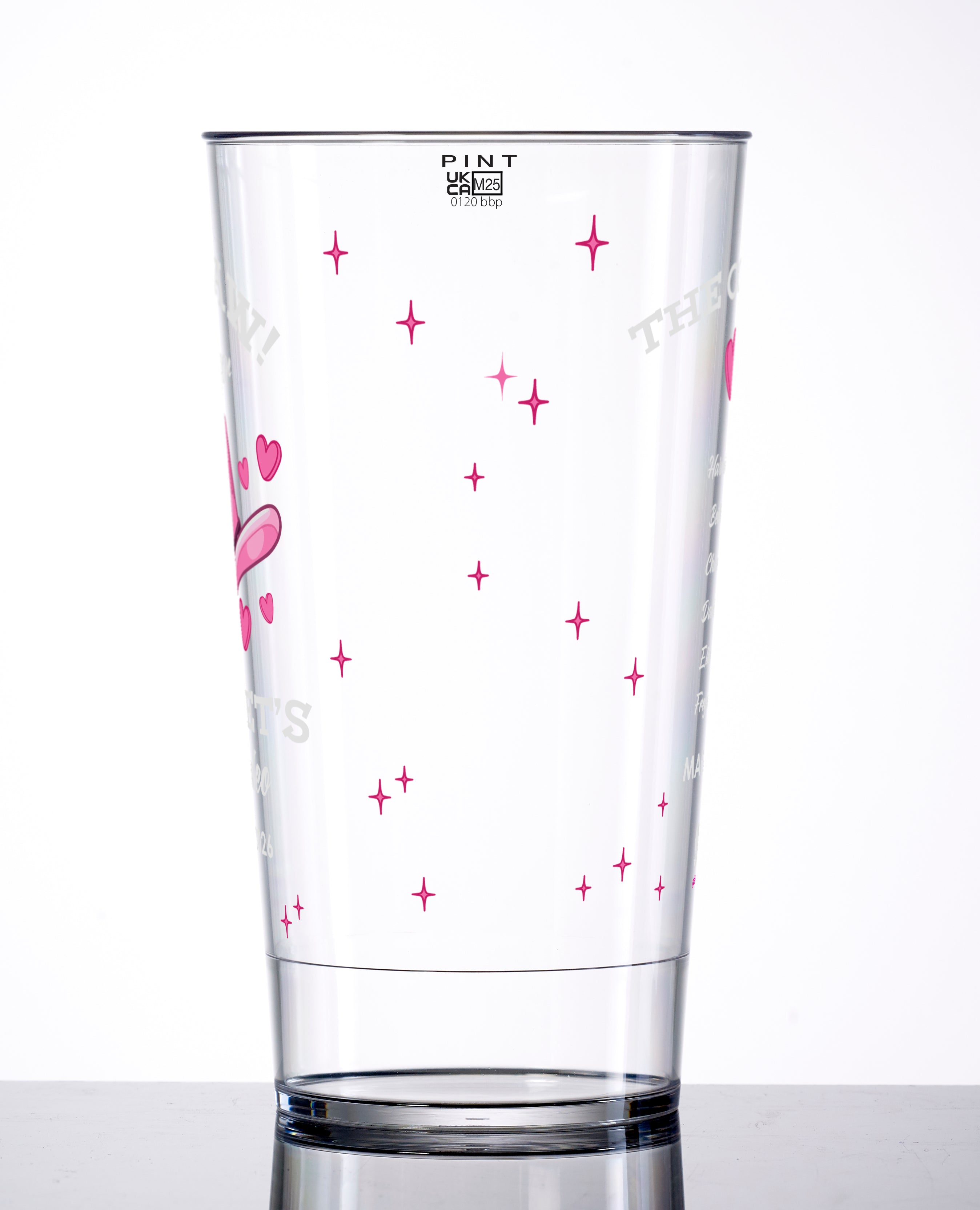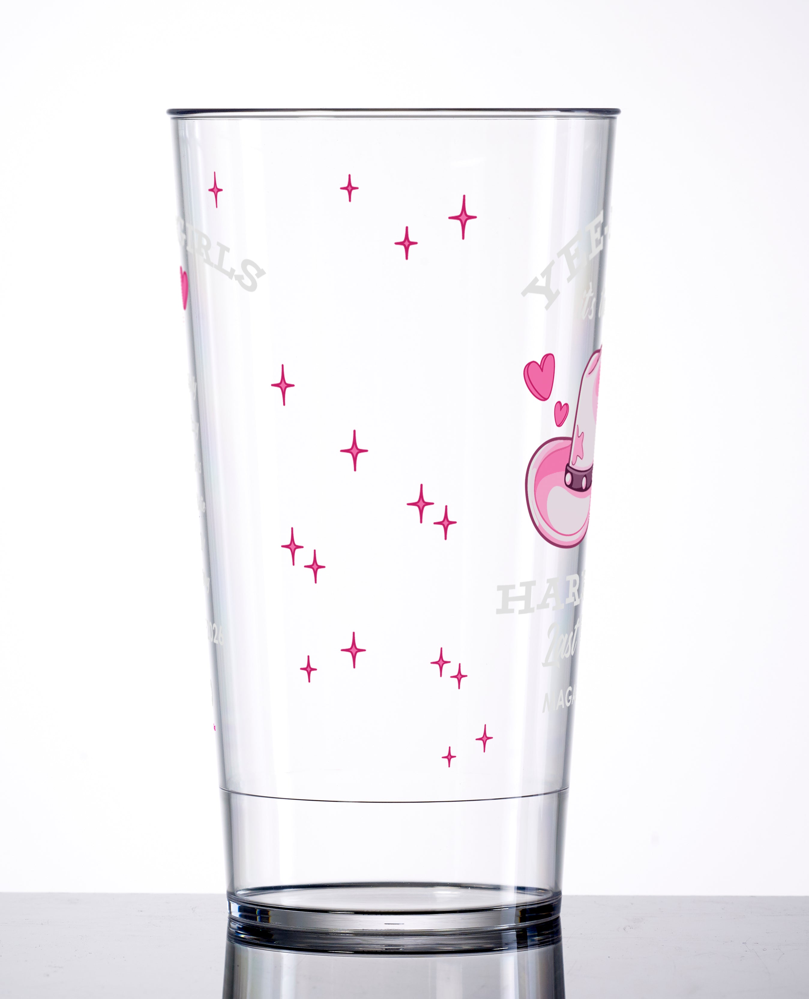 20oz reusable plastic pint cup, satin/matte print, full wrap.